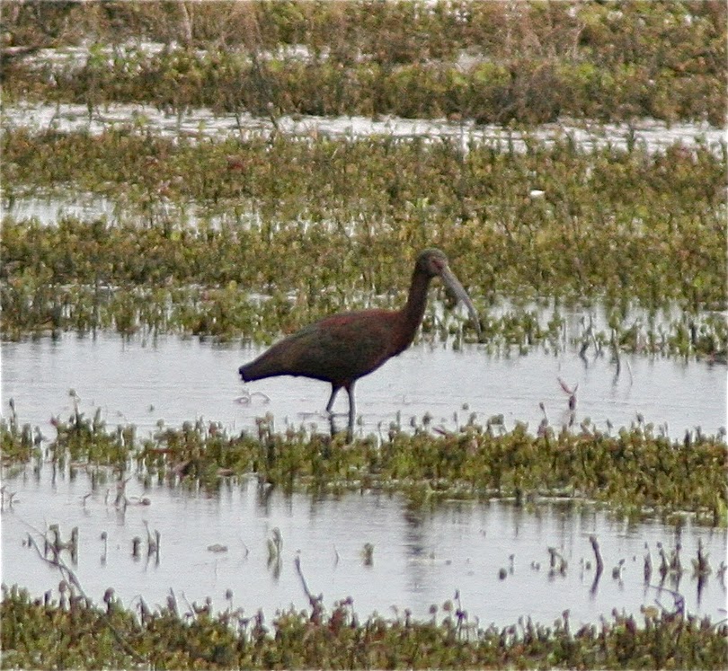 Anyway, after about 45 minutes of sitting in a ball at the edge of the impoundment I got some passable recording shots of the Glossy and White-faced Ibis and what I think are also some hybrids. I would have gotten some much better pics because the birds were working their way to me but some fisherman with a Diesel Truck came barreling down the dyke and flushed them again.