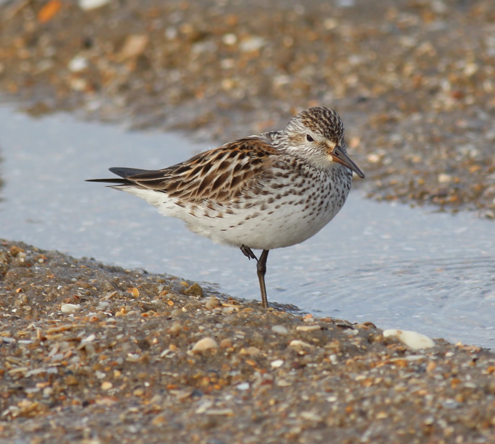 I was able to immediately pick out this White-rumped Sandpiper from all the Semis. Nice patterns on the flanks and slightly larger size helped and the long wings sealed the deal.